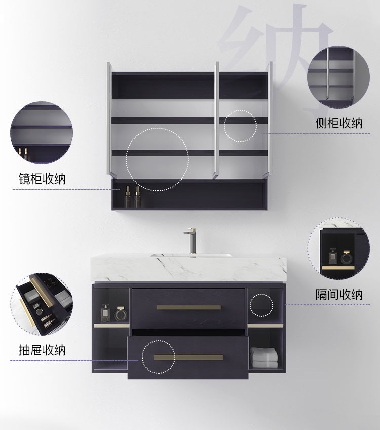 打動你的豈止是高顏值,APPOLLO阿波羅浴室柜超大收納空間也很是驚艷!鏡柜+側柜+抽屜+隔間,四大收納區(qū)域,讓你告別凌亂,打造整潔精致衛(wèi)浴空間,變收納為一種藝術。