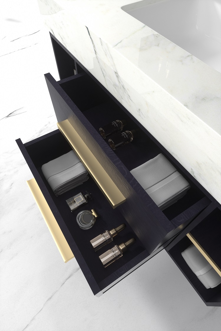 這款APPOLLO阿波羅浴室柜,柜身顏色大膽采用妖姬藍,打破傳統(tǒng)色彩束縛,高貴典雅的藝術氣質(zhì),讓人挪不開眼。