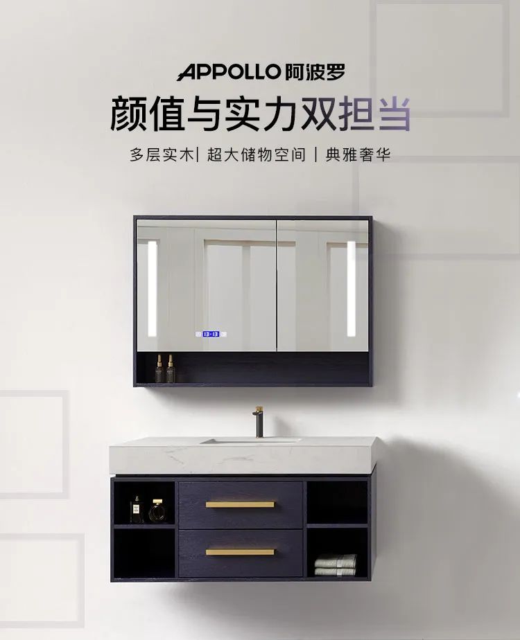那一款富有設計感又兼顧實用性的浴室柜是怎樣的呢?接下來小編給您介紹一款堪稱時尚高貴新典范的APPOLLO阿波羅浴室柜,看它是如何為平平無奇的浴室增色、用滿分收納空間俘獲人心的~
