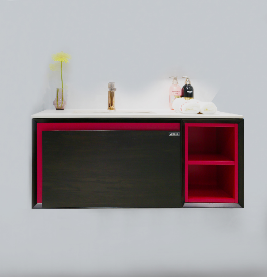 美國白蠟木+橡膠木皮,堅韌且富有彈性,切面細膩光滑,經久耐用,質感更佳手感更好;煙熏色+印度紅大膽撞色,色彩鮮艷顯眼,讓整個衛浴空間活潑起來;