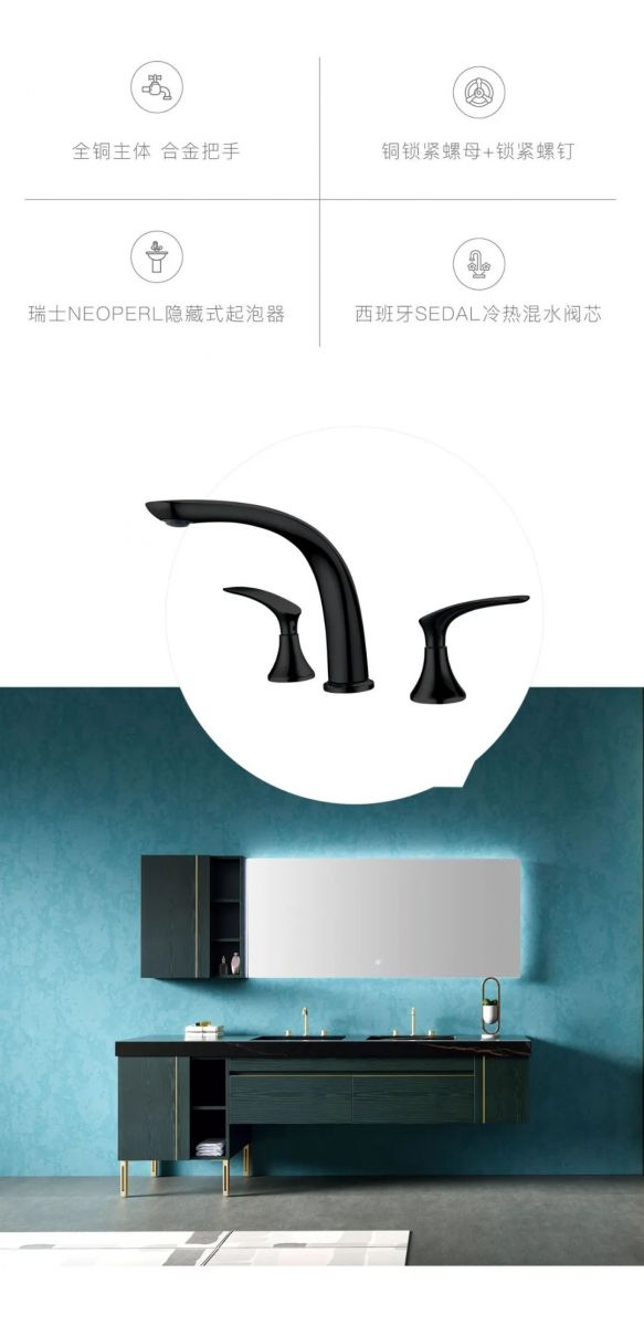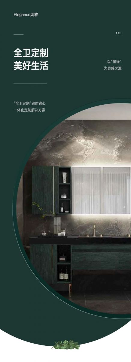 智能浴室柜 高端格調的墨綠搭配金色鋁框設計更顯大氣,高清智能智能壁掛觸摸屏LED鏡清晰自然;分區收納物品,整齊干凈!