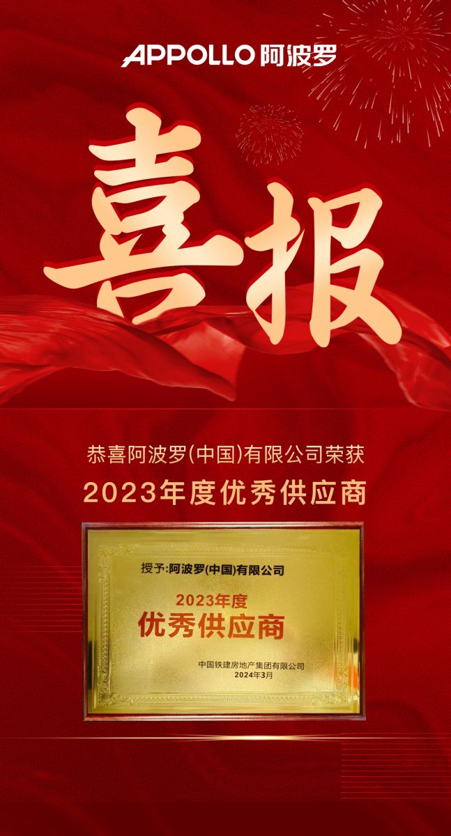 熱烈祝賀!阿波羅(中國)有限公司榮獲中國鐵建地產“2023年優秀供應商”