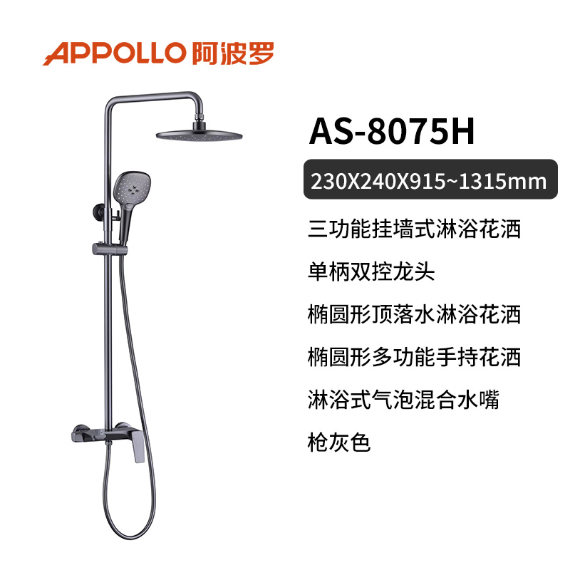 AS-8059H掛墻式淋浴花灑套裝,作為現代衛浴空間的優選產品,集多種功能于一體,為用戶帶來極致的淋浴體驗。