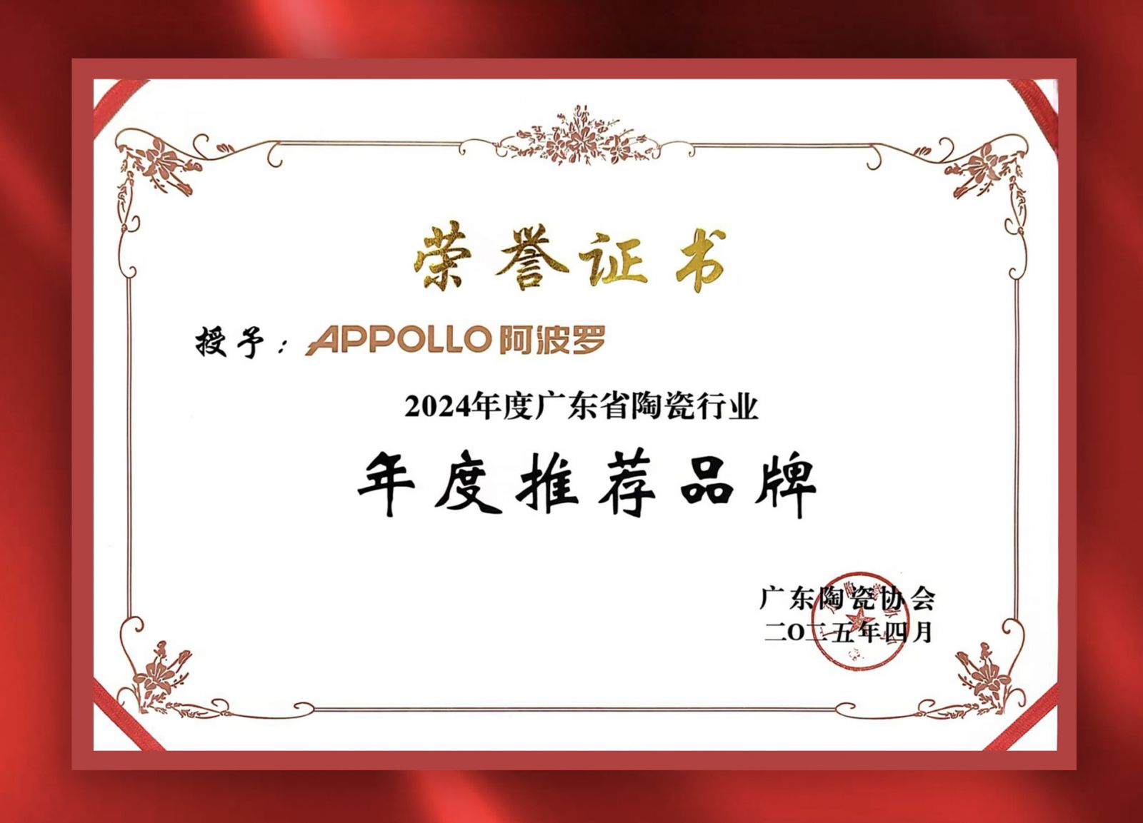 載譽前行! 阿波羅榮獲廣東省陶瓷行業“年度推薦品牌“!